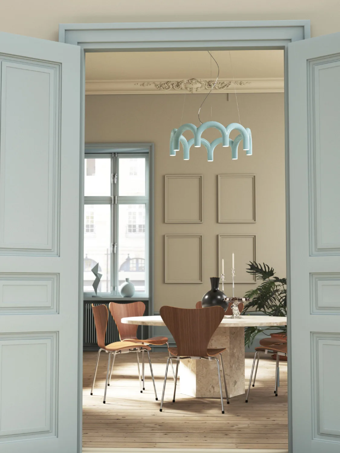 The Arch Pendant quickly became a favorite, now it’s taking on a new form. Thearchitectural arches still form the design,